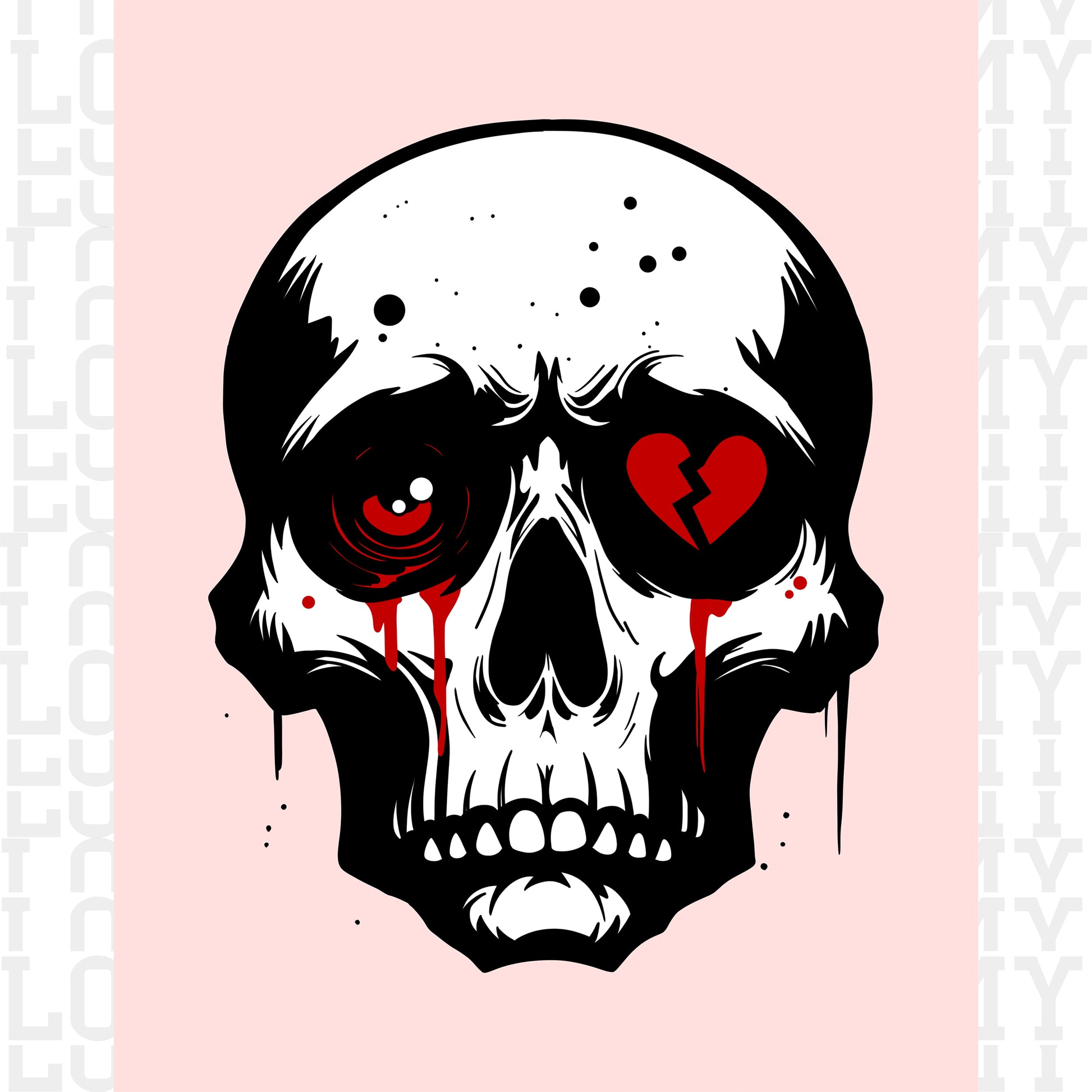 Elevate your decor with this hauntingly beautiful digital artwork of a bleeding skull featuring heart-shaped eyes. Perfect for fans of gothic art, alternative aesthetics, or those who want to add a touch of love-meets-macabre to their space.