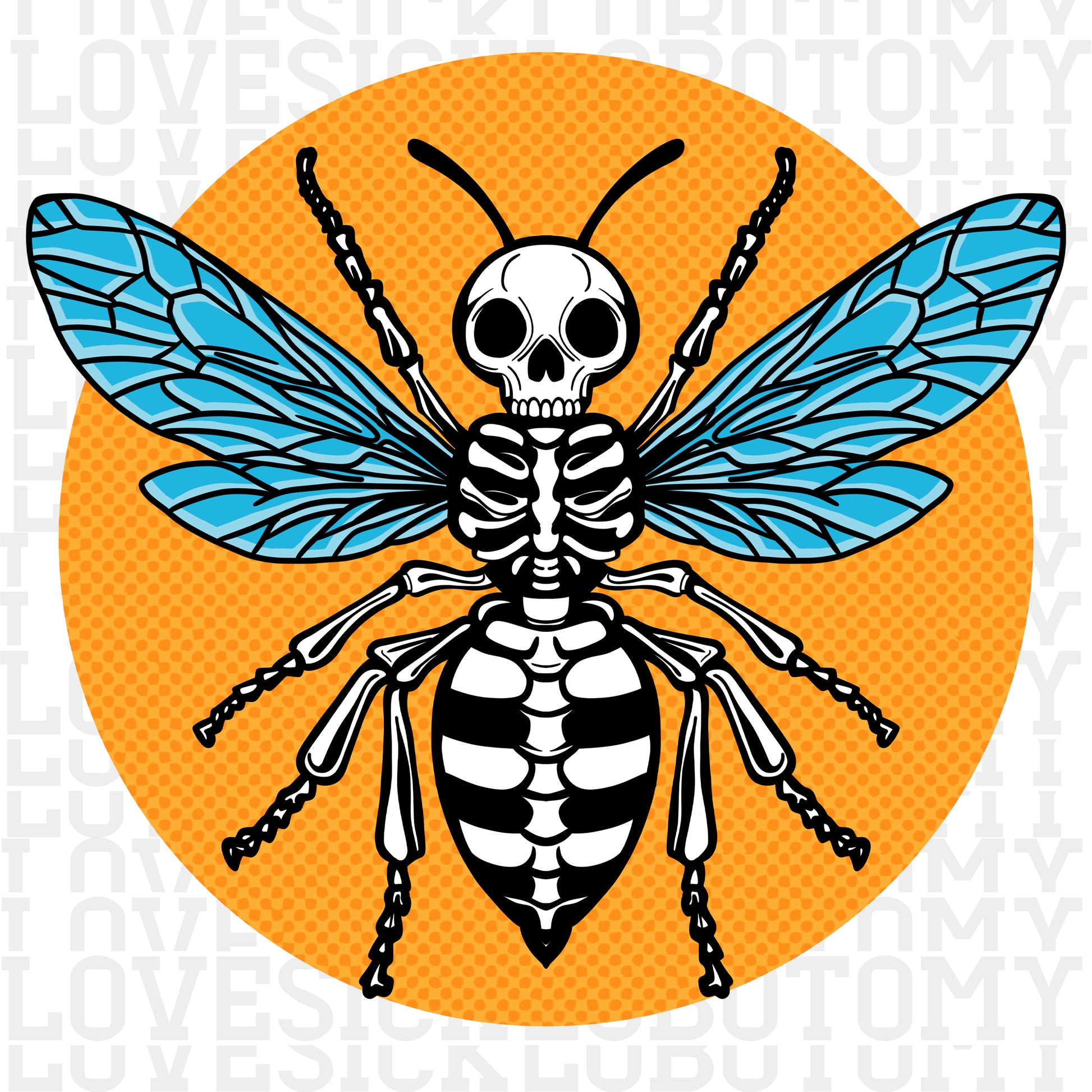 Add a touch of bold, dark art to your projects with this Skeleton Bee digital artwork. Featuring a skeletonized bee with vibrant blue wings on a bright orange background, this high-quality design is perfect for a range of creative uses.