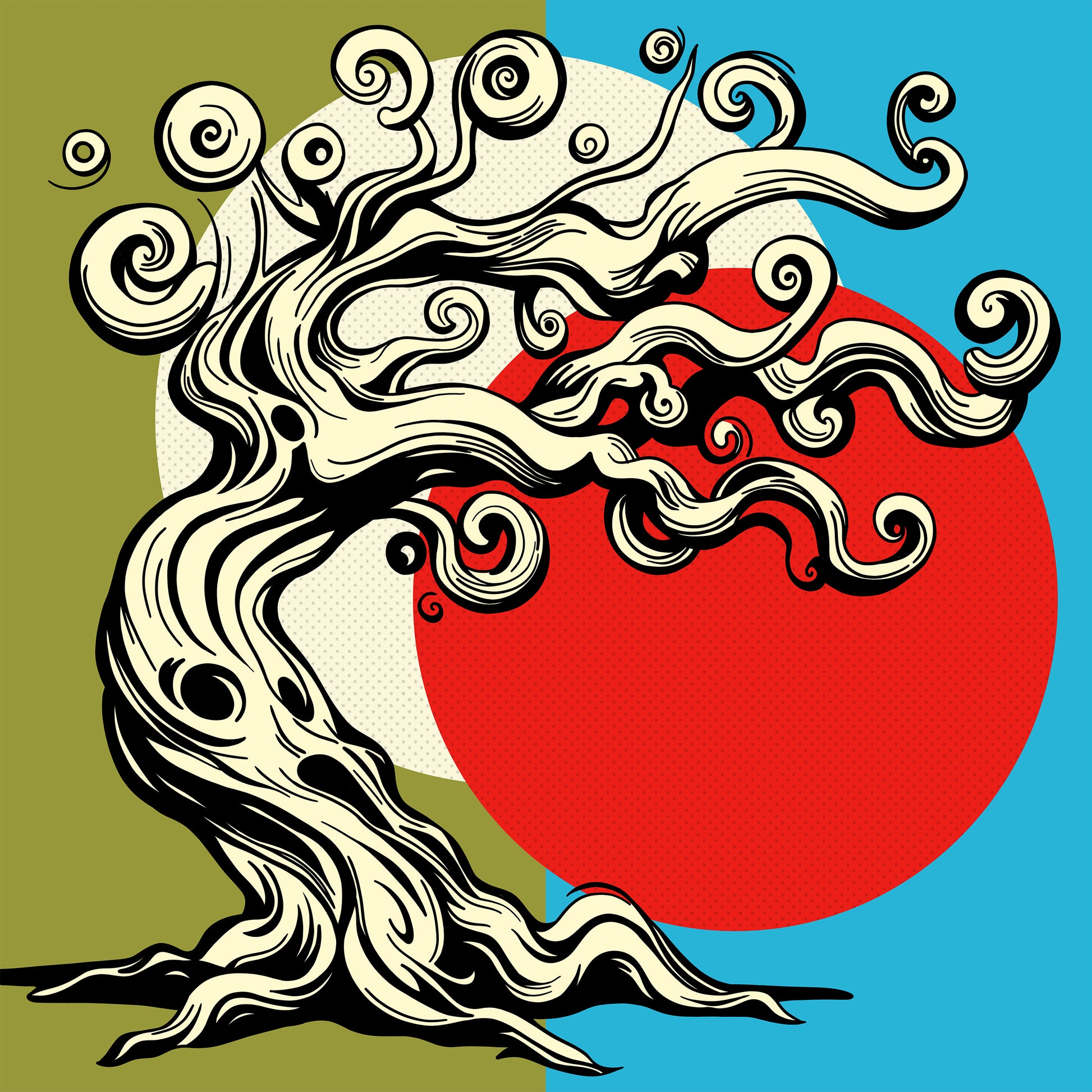 Bring bold, surreal energy to your space with this eye-catching pop art piece. Featuring a twisted, swirling tree set against a backdrop of retro halftone dots and vibrant color blocks, this artwork blends nature with graphic intensity. Perfect for fans of psychedelic illustration, bold design, or whimsical gothic flair.